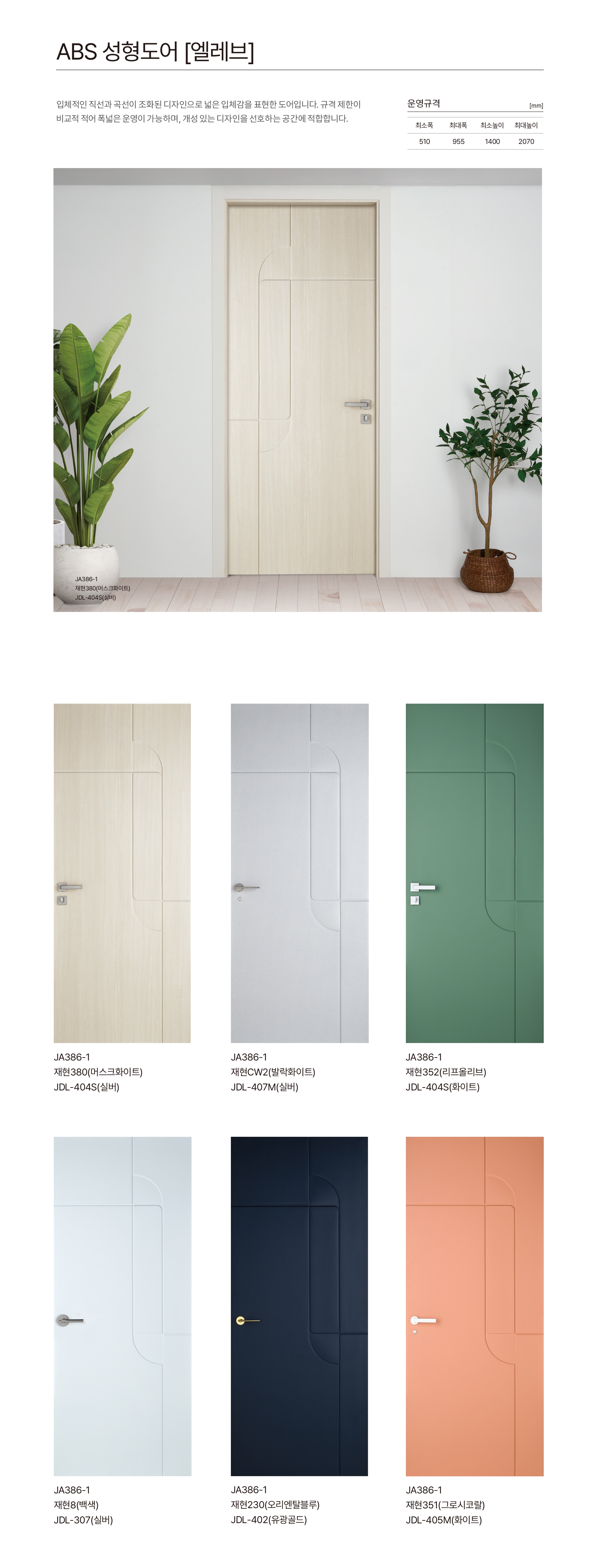 • ABS 도어는 열합지 공정으로 인해 엣지·문틀·몰딩 등의 색상과 차이가 발생합니다. 이색현상은 시트지 색상불량이 아님을 알려드립니다.