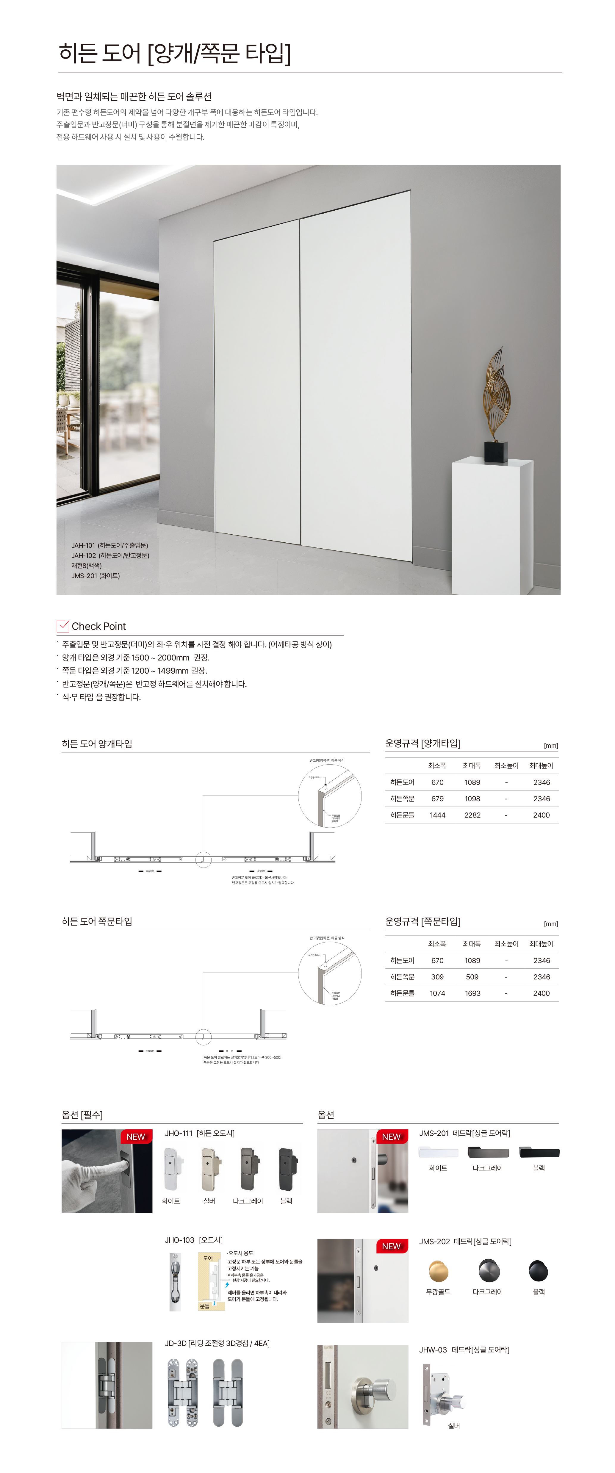 MODEL : 히든 도어 [양개/쪽문 타입]