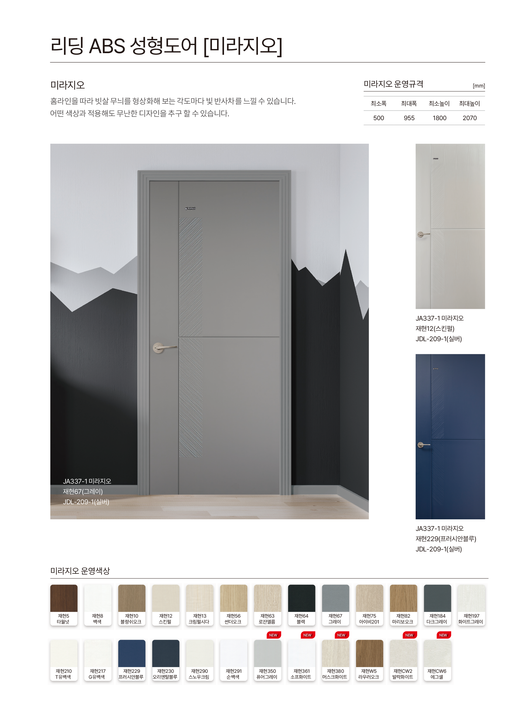 • 멤브레인 도어 휨현상은 실내·외부 온도차 환경에 따라 불량률이 높습니다. 해당환경(발코니·욕실·다용도실 등)에는 ABS도어를 권장합니다.