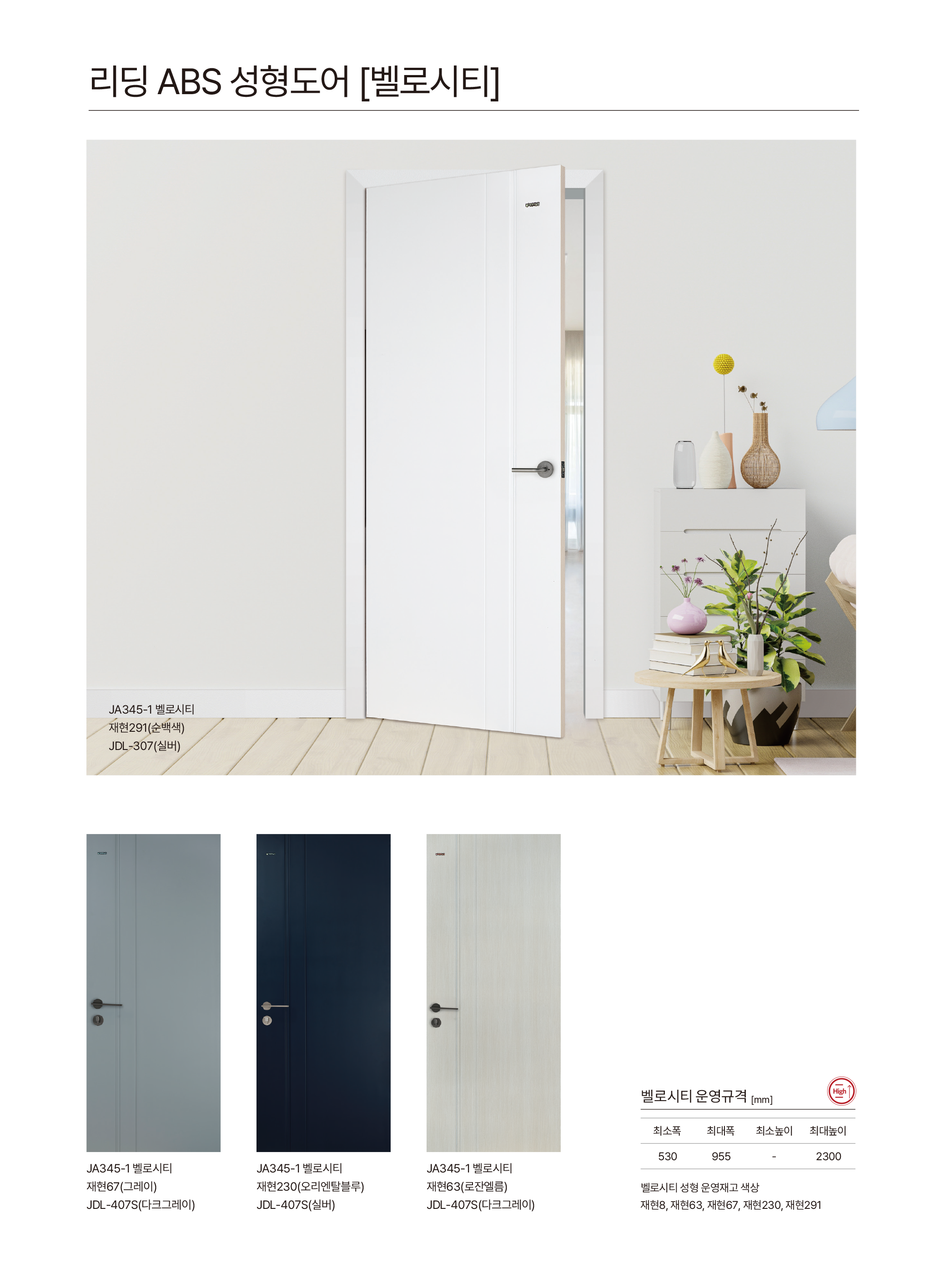 • ABS 도어는 열합지 공정으로 인해 엣지·문틀·몰딩 등의 색상과 차이가 발생합니다. 이색현상은 시트지 색상불량이 아님을 알려드립니다.