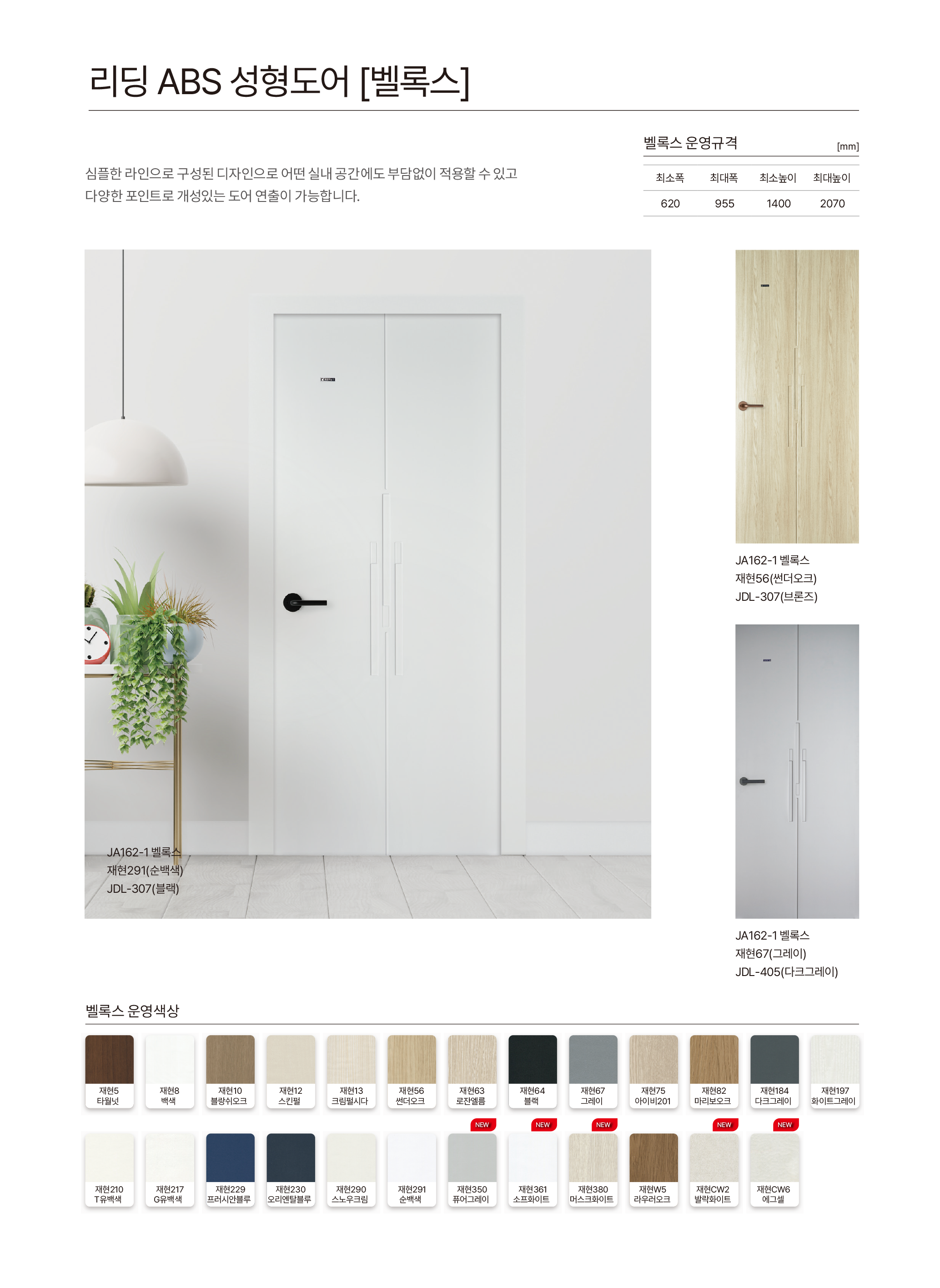 • ABS 도어는 열합지 공정으로 인해 엣지·문틀·몰딩 등의 색상과 차이가 발생합니다. 이색현상은 시트지 색상불량이 아님을 알려드립니다.