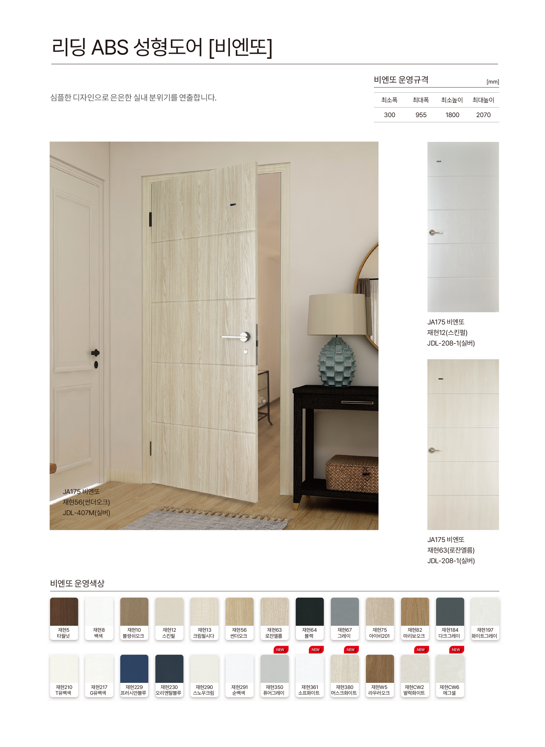 • ABS 도어는 열합지 공정으로 인해 엣지·문틀·몰딩 등의 색상과 차이가 발생합니다. 이색현상은 시트지 색상불량이 아님을 알려드립니다.