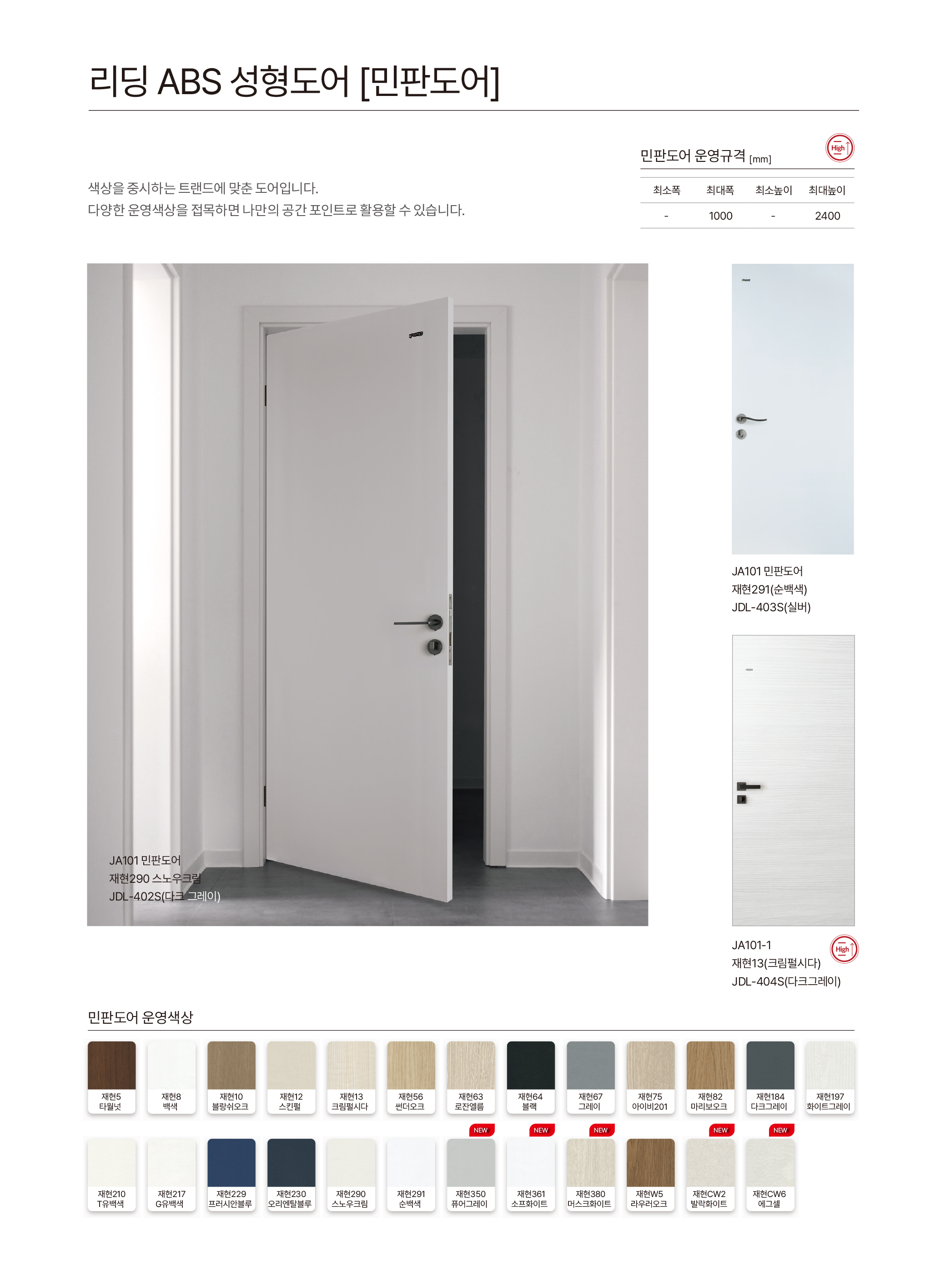 ABS 도어는 열합지 공정으로 인해 엣지·문틀·몰딩 등의 색상과 차이가 발생합니다. 이색현상은 시트지 색상불량이 아님을 알려드립니다.